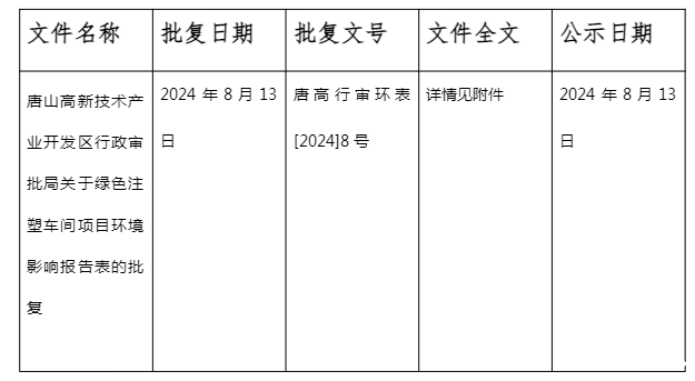 关于绿色注塑车间项目环境影响评价文件的审批决定公示