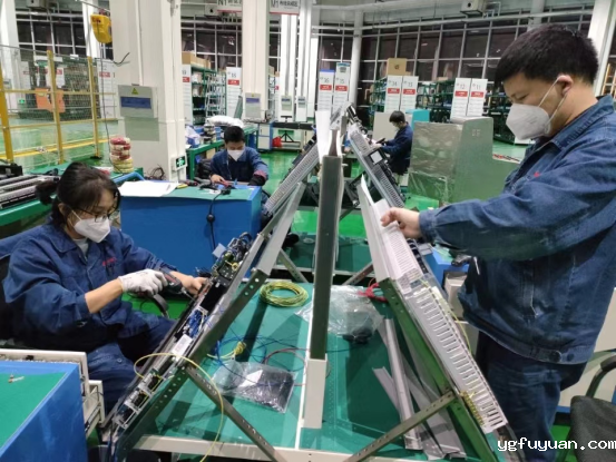 企业厂房内也是一派繁忙景象。技术人员佩戴口罩熟练地调试着设备,生产线上零件也是不停转,企业正开足马力加快生产。