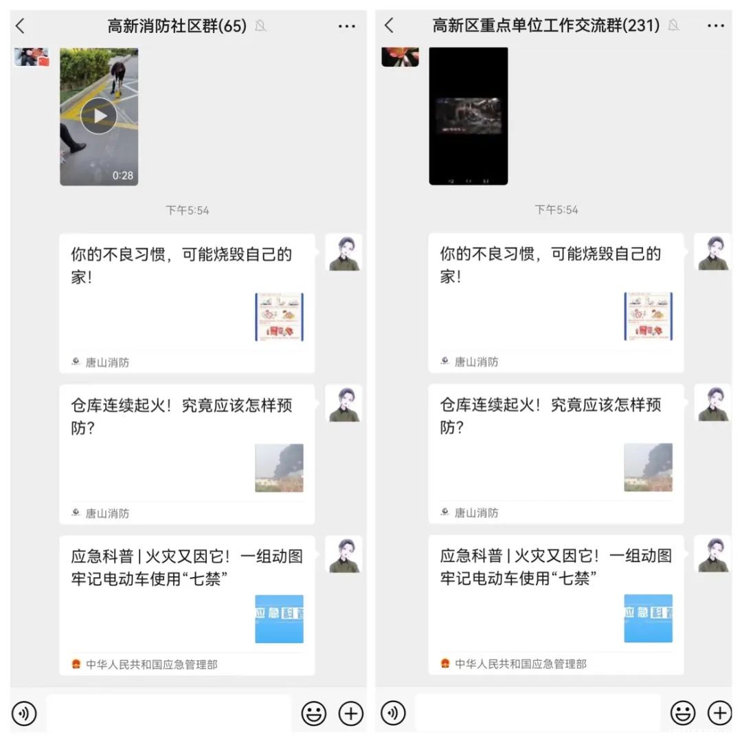 特殊的疫情时期,为了避免面对面接触,监管效能不减,大队紧密结合当前火灾特点及相关火灾案例,本着贴近实际、贴近群众、贴近生活的原则通过微信群、朋友圈推送企业、家庭、电动车等方面消防安全提示。微信群中大队与各单位第一时间做好对接,及时更新消防工作动态,传达消防工作提醒,确保消防信息能够及时沟通。