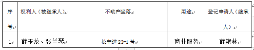 根据《不动产登记暂行条例实施细则》第十四条的规定,经初步查验,不动产登记机构拟对下列不动产权利办理不动产继承登记。根据《不动产登记暂行条例实施细则》第十七条的规定,现予公告。如有异议,请自本公告之日起90个工作日内,将异议书面材料送达不动产登记机构。逾期无人提出异议或者异议不成立的,不动产登记机构将予以登记。