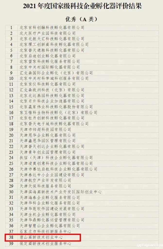 近日,科技部火炬中心公布了国家级科技企业孵化器2021年度考核评价结果,唐山高新技术创业中心以其完善的培育服务体系,在1277家国家级科技企业孵化器中脱颖而出,再度跻身考评优秀(A类)国家级孵化器之列,河北省仅5家孵化器获评本年度优秀(A类),至此,创业中心成为我市唯一一家连续八年获此殊荣的孵化器。
