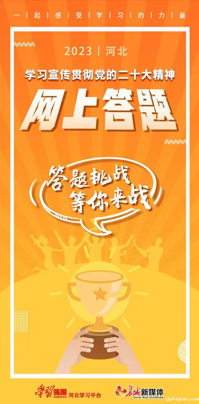 想展示一下自己的学习成果吗?想与答题高手一较高下吗?想赢得“学习达人”称号吗?由“学习强国”学习平台、中共河北省委宣传部指导,“学习强国”河北学习平台、长城新媒体集团主办的“学习宣传贯彻党的二十大精神网上答题活动”,马上就要开始了!