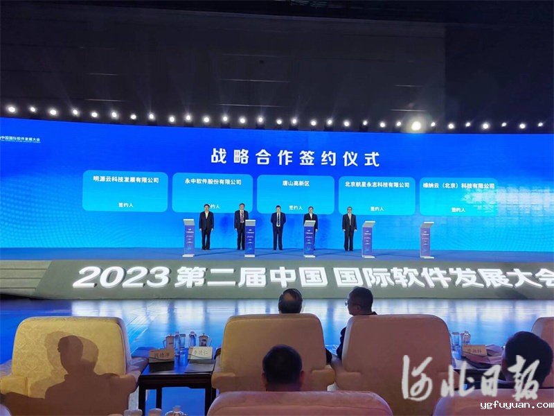 河北日报讯(记者师源 通讯员韩伟)突破核心技术,赋能实体经济。4月18日至19日,第二届中国国际软件发展大会在北京国家会议中心举行。会上,中软国际有限公司等8家企业与唐山国家高新技术产业开发区(简称“唐山高新区”)签约入驻唐山软件园,涵盖钢铁行业数字化转型、智慧城市、人工智能、数字化项目管控等多个领域,将有力促进唐山市优势产业数字化转型,助力唐山市做大做强软件产业规模。