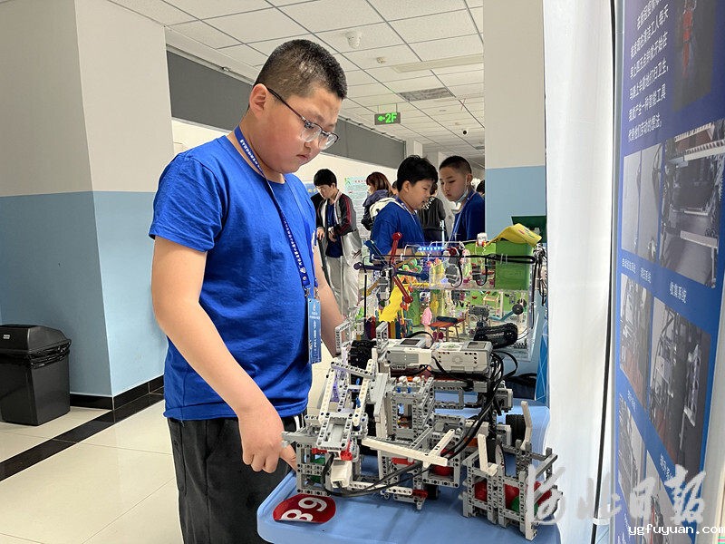机器人创意设计比赛现场,学生们正在设计作品。河北日报记者师源摄