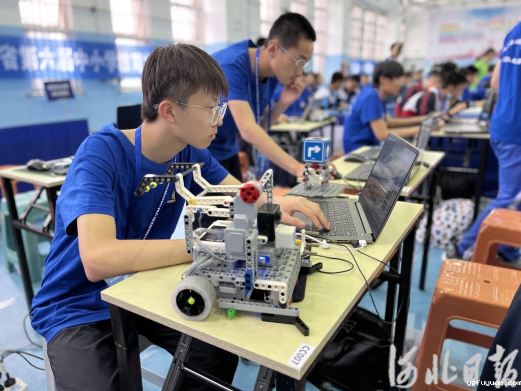超级轨迹赛中,学生正在对机器人进行编程。河北日报记者师源摄