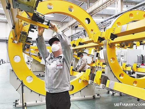 近日,在唐山开元自动焊接装备有限公司组装车间,工人正在组装调试焊接机器人。河北日报记者师源摄