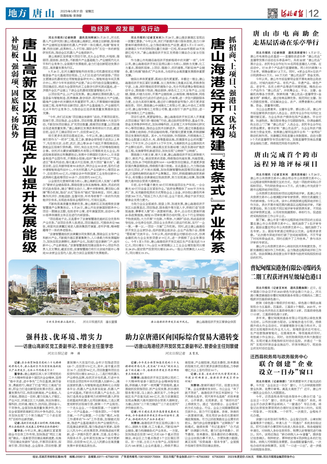 唐山高新区坚持重大项目引领,龙头企业带动,补短板、强弱项、固底板、扬优势,不断提升产业基础能力、产业链现代化水平和行业竞争力,全面提升发展能级,奋力打造创新驱动发展示范区、高质量发展先行区。