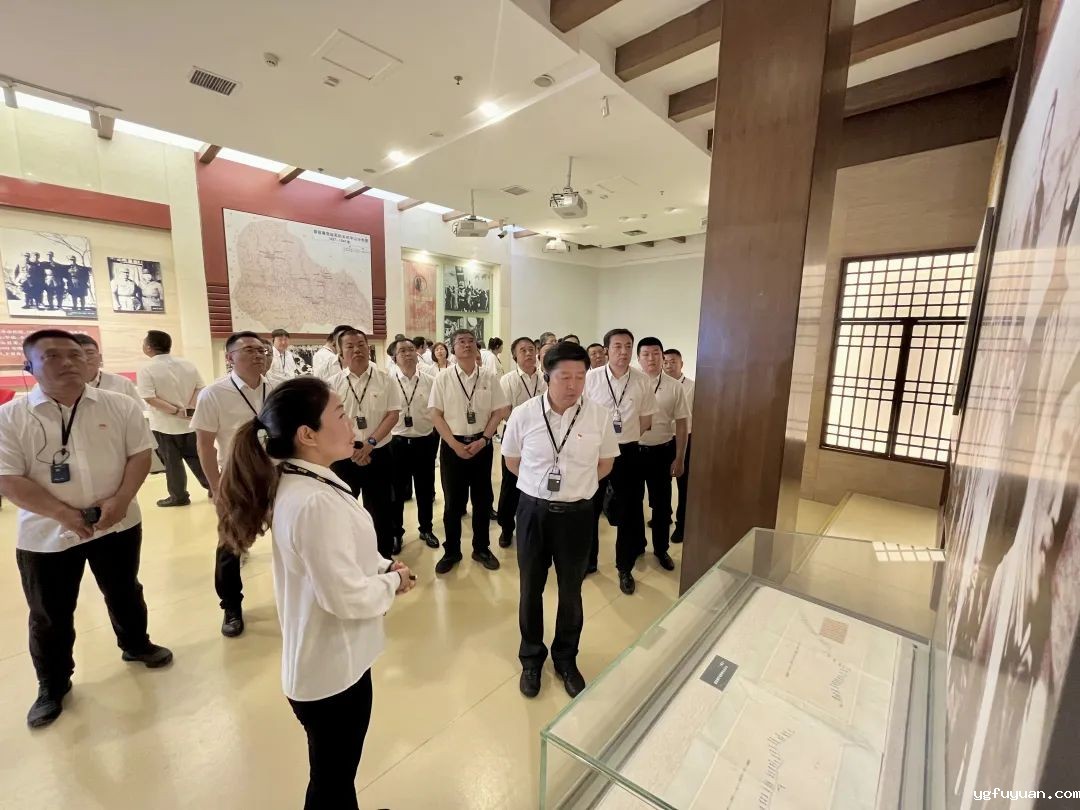 27日上午,在西柏坡纪念馆广场,董学忠一行举行了庄严而肃穆的敬献花篮仪式,党员干部们合唱国歌,重温入党誓词,向领袖行礼三鞠躬。并在纪念馆讲解员的引导下,大家看图片、观实物、听故事、找初心。70多年前,作为解放全中国的“最后一个农村指挥所”,“一部电话、两张地图、三套桌椅、四间平房”是当时艰苦作战条件的写照。中共中央在西柏坡指挥了震惊中外的辽沈、淮海、平津三大战役,决定了中国的命运,在这里,大家对“进京赶考”有了更深刻的认知与理解。