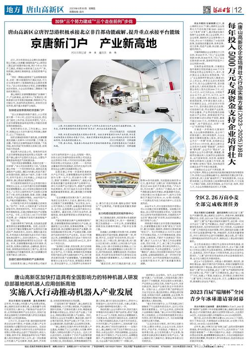 河北日报讯(记者师源)近日,唐山高新区出台了《唐山高新区企业培育壮大行动实施方案(2023-2025)》(以下简称“方案”),重点推进实施大型骨干企业培育、规上企业培育、中小企业培育、高新技术企业培育等七大行动,并从16个方面提出了30条支持政策,加速推动质量变革、效率变革、动力变革,促进产业链、供应链、创新链同步跃升。