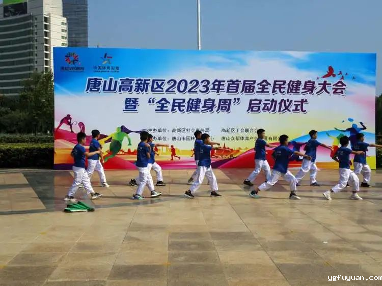 此次“全民健身周”启动仪式以健身展演为主,来自全区各学校、协会、社团、培训机构的14支代表轮番上阵,近千人参与其中。活动在极具特色的浴花舞《唐山姑娘》展演下拉开了序幕。龙富小学的《拳速激情》、华溢艺术培训的《一路生花》、星河湾小学的《启航篮球操》等节目赢得了现场观众的阵阵掌声。