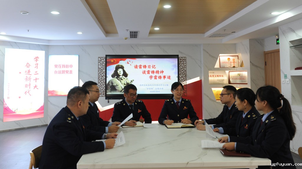 图为国家税务总局唐山高新区税务局青年理论学习小组学雷锋主题活动现场。