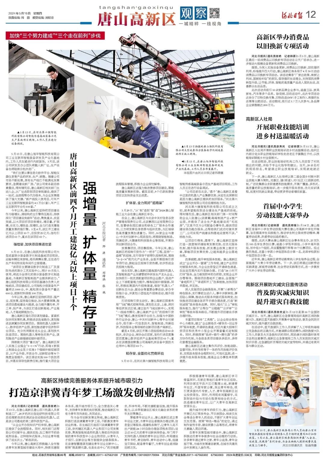 “从企业开办到知识产权申报,唐山高新区提供了全流程服务。同时,相关部门还帮助公司对接平台,提供实验、加工等环节的场地和设备。这种陪伴式服务,为创业青年提供了成长沃土。”郭浩田说。