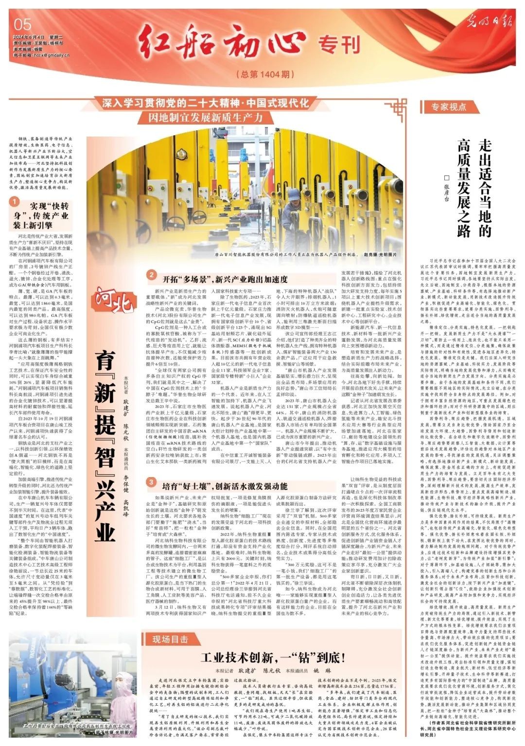 近日,光明日报以《河北:育“新”提“智”兴产业》为题,聚焦高新区机器人产业跑出加速度。现将原文转载如下: