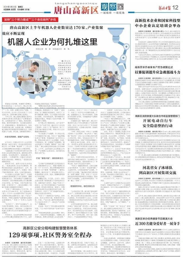 近日,河北日报以《机器人企业为何扎堆这里》为题,宣传报道唐山高新区机器人产业蓬勃发展。现将原文转载如下: