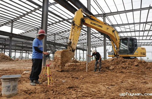 9月13日,在唐山陆凯科技有限公司大型成套筛分装备数字化制造基地项目施工现场,工作人员在平整地面。