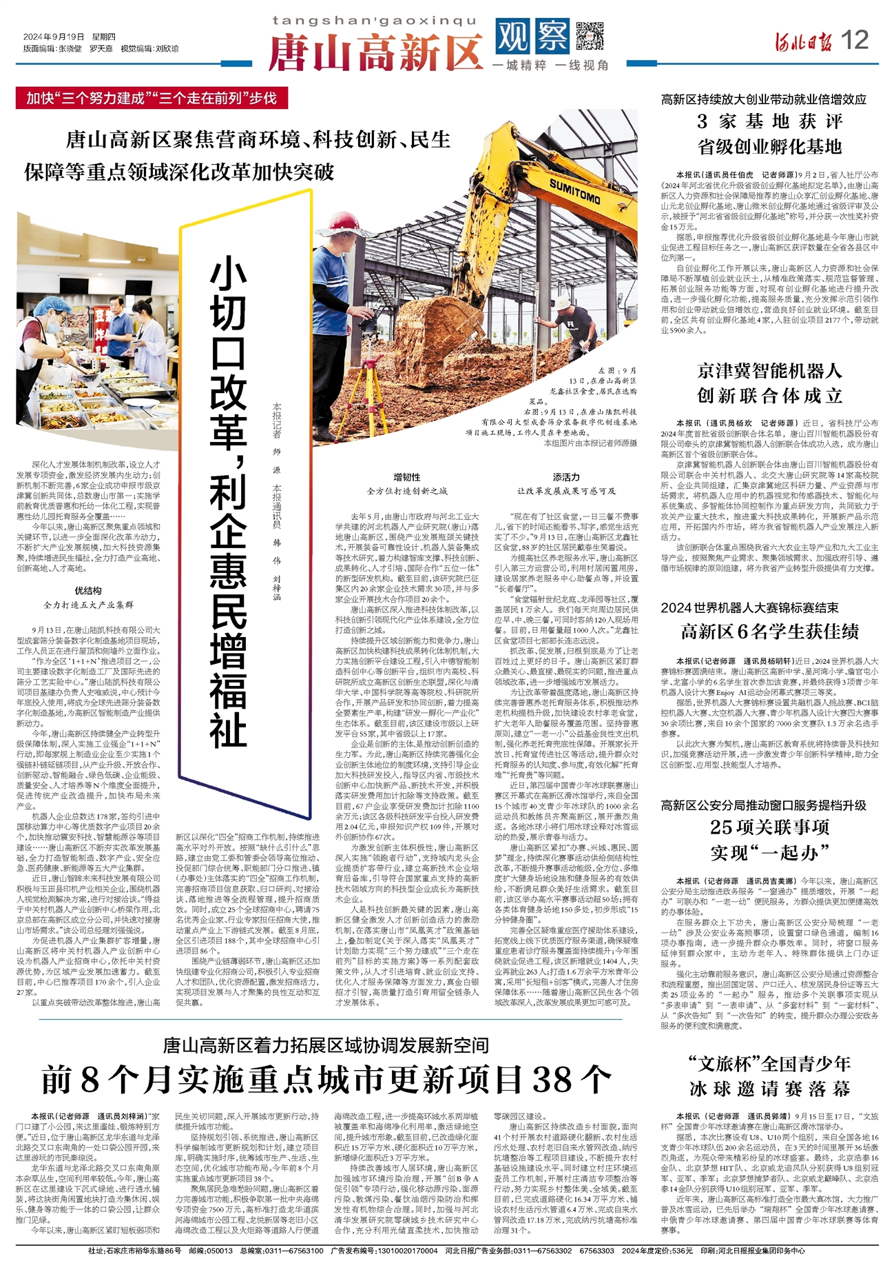 近日,河北日报以《唐山高新区:小切口改革,利企惠民增福祉》为题,报道高新区聚焦重点领域和关键环节,以进一步全面深化改革为动力,不断扩大产业发展规模,加大科技资源集聚,持续增进民生福祉,全力打造产业高地、创新高地、人才高地。现将原文转载如下: