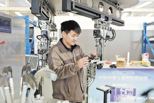 1月15日,在唐山四维智能科技有限公司(以下简称“四维科技”),工作人员在对装瓶机器人进行升级。