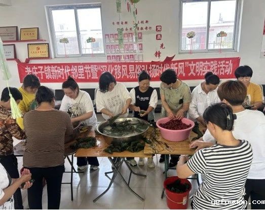 为深入贯彻落实党的二十大精神,培育和践行社会主义核心价值观,推动形成和谐邻里关系,破除陈规陋习,弘扬时代新风,老庄子镇新村于5月29日下午组织开展新时代邻里节暨深化移风易俗,弘扬时代新风文明实践活动。临近端午节,新村准备好米、大枣和粽叶,邀请村里的妇女同志齐聚村文明实践站包起了粽子,营造了文明和谐的乡村氛围。