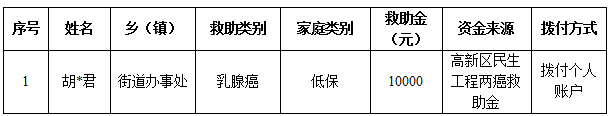救助对象确定标准:本次救助对象范围为摸排报送的经民政或乡村振兴部门认定的特困人员、低保对象、易返贫致贫人口、支出型困难人口(指因病因灾因意外事故等刚性支出较大或收入大幅缩减导致基本生活出现严重困难人口)中,且经过有诊断资质的医疗机构确诊、患有宫颈浸润癌IIB以上或乳腺浸润癌的妇女,救助标准为每人一次性救助 10000 元人民币。