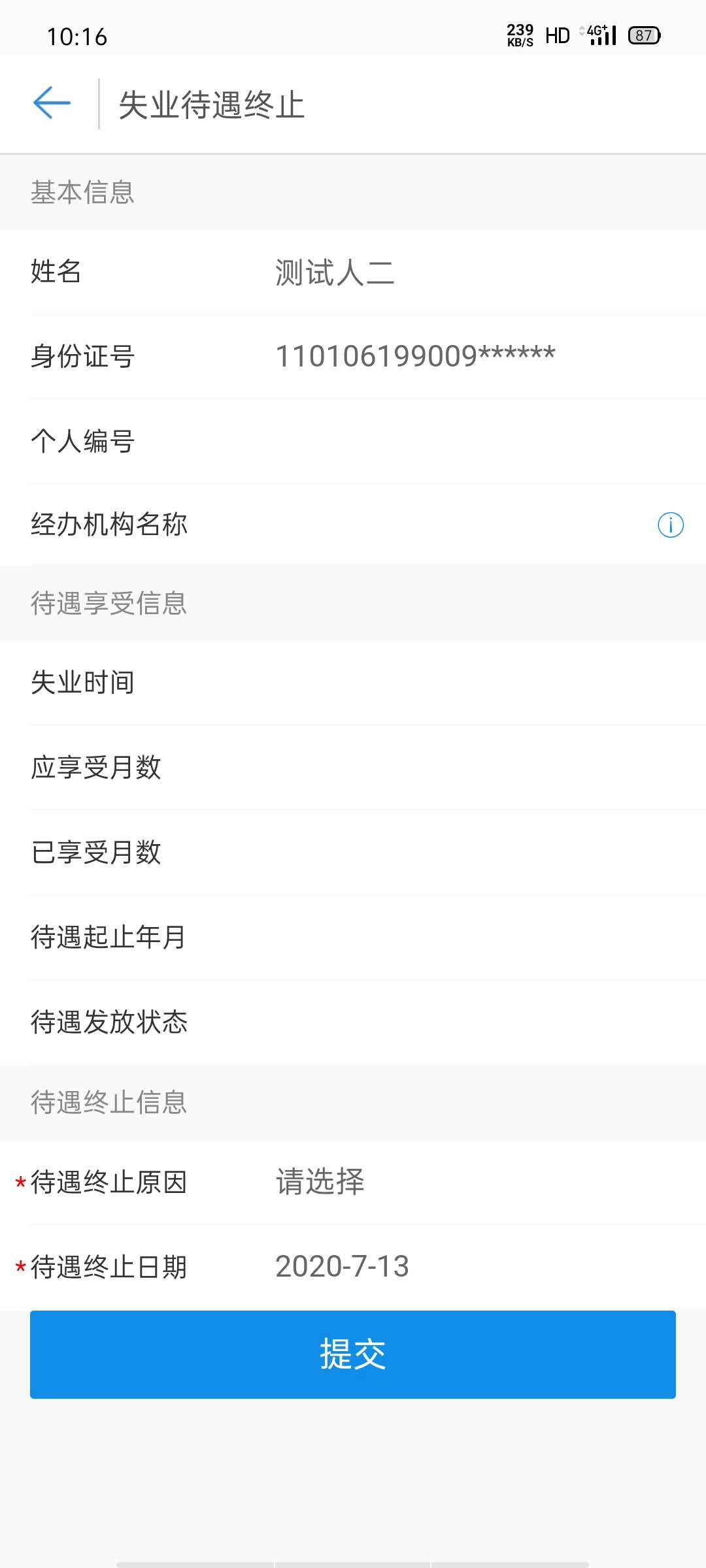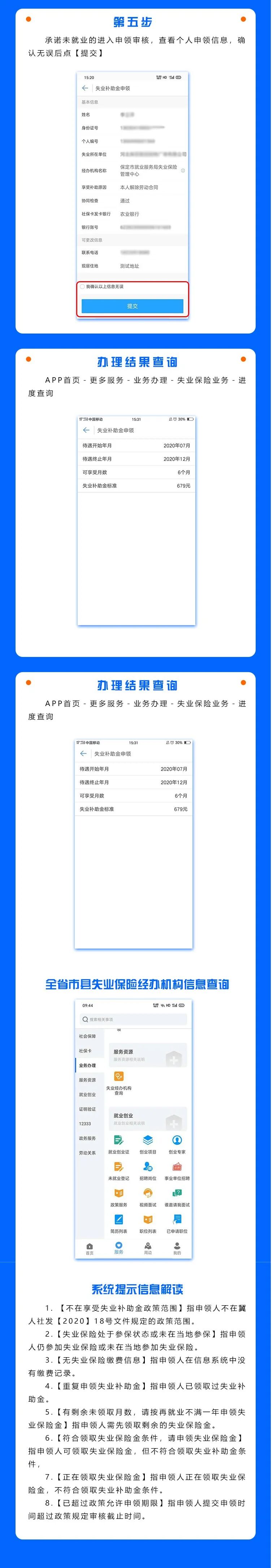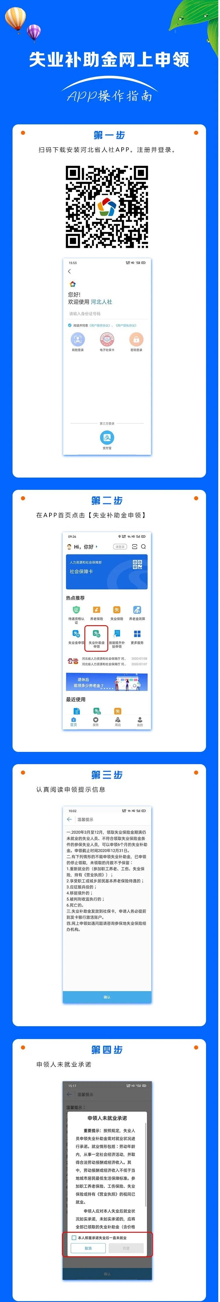 申报操作流程:登录“河北人社”APP,首页最下端点击【服务】——点击左侧菜单【业务办理】——点击【失业保险业务】——点击【失业待遇终止】——选择【终止原因】、【终止时间】——确定后【提交】。