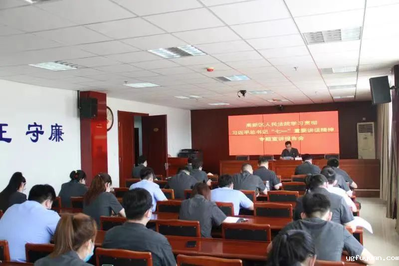 8月2日,高新区人民法院召开习近平总书记“七一”重要讲话精神宣讲会,院党组书记、院长阙少营就习近平总书记“七一”重要讲话精神向全院干警进行宣讲。