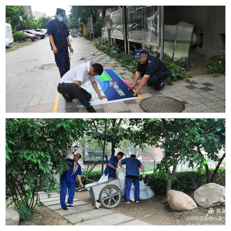 工作人员联合博志物业,对小区内环境卫生进行治理。