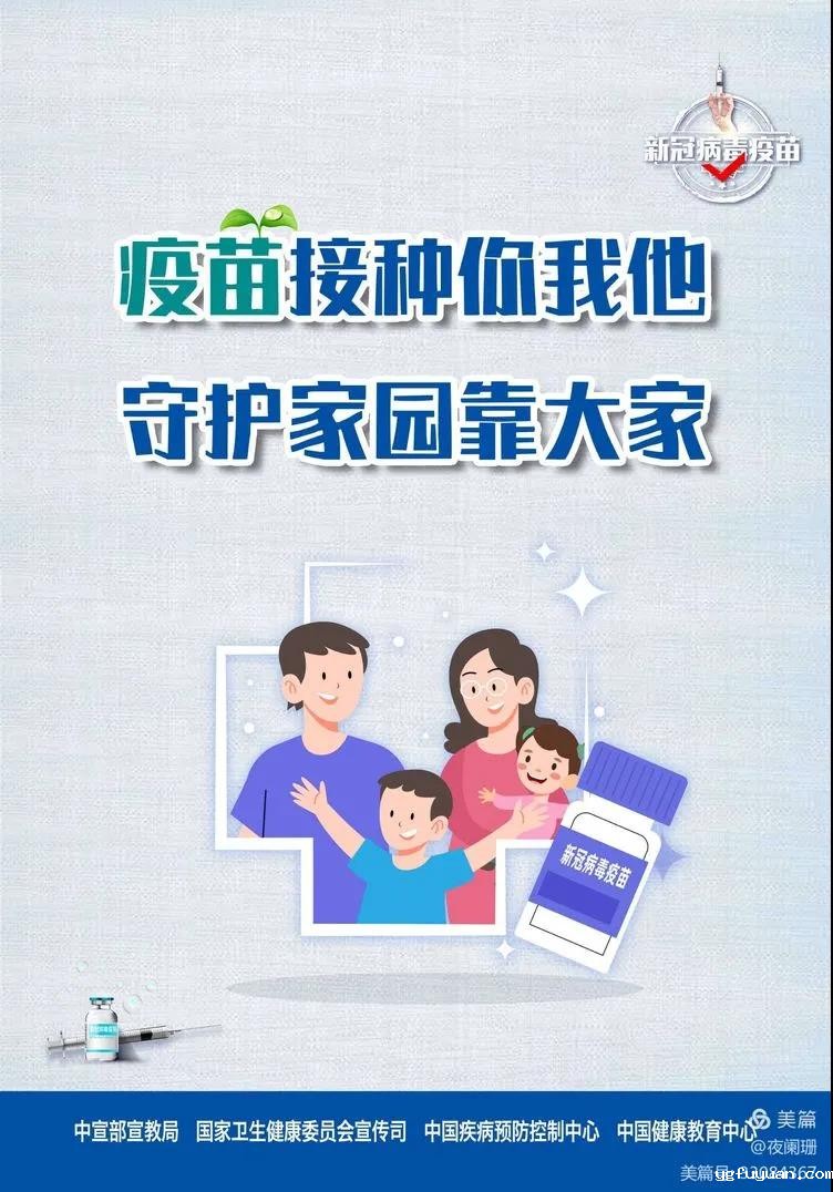 接种新冠疫苗是预防控制新冠肺炎传播的最经济、最有效、最方便的措施,更是每一位公民应尽的责任和义务,请符合新冠疫苗接种条件的群众积极主动参与新冠病毒疫苗接种,携手共筑全民免疫屏障。