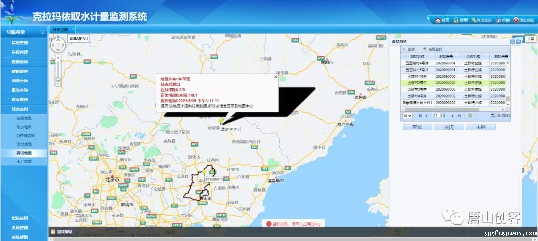 图为唐山蓝迪通信科技有限公司研发的取水计量监测系统界面。