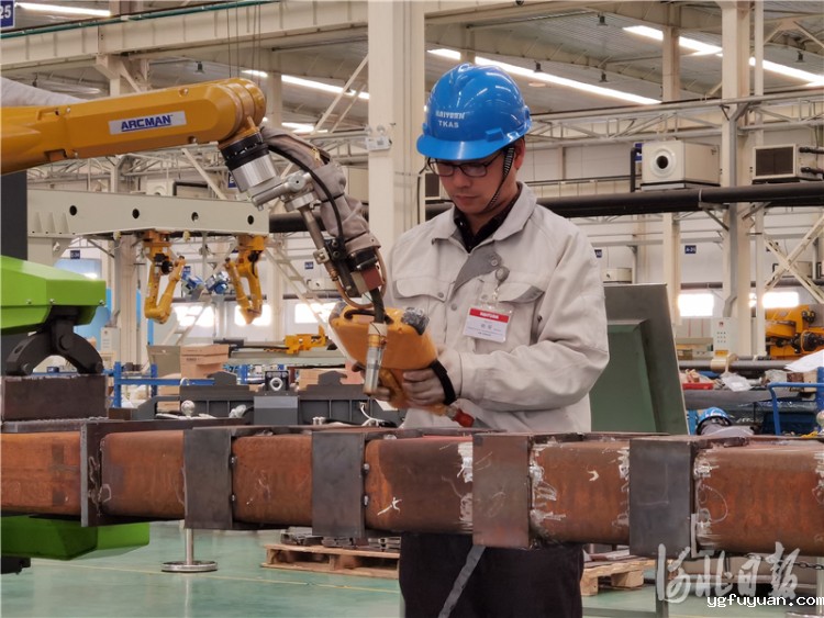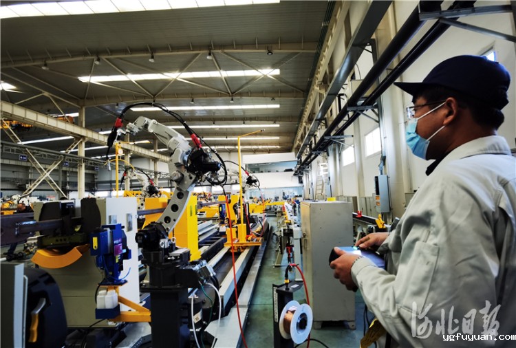 12月22日,在开元集团,工人操控机器人进行焊接作业。 河北日报记者王育民摄