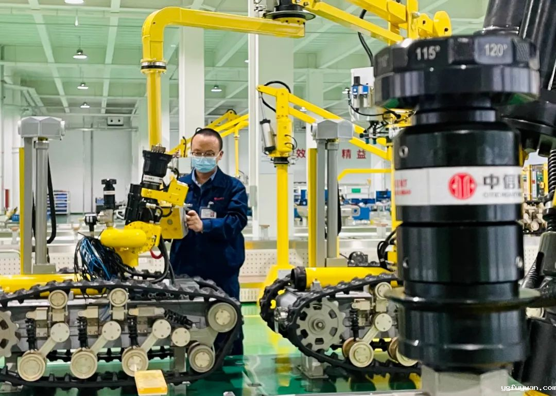 近日,中信重工开诚智能装备有限公司的技术工人正在组装消防机器人。