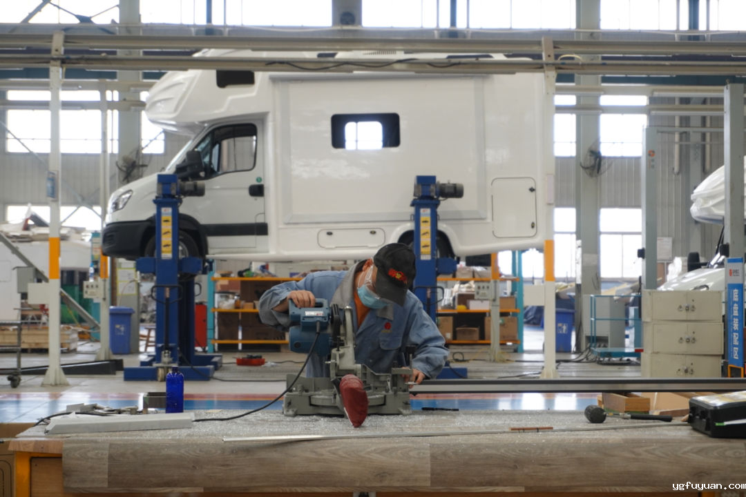 唐山亚特专用汽车有限公司的工人正在进行铝型材切割