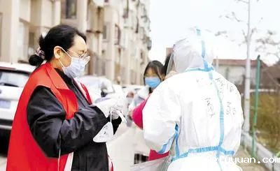 新景楼社区志愿者(右)带头参与疫情防控、政策宣传等活动,形成全社区共同参与疫情防控的氛围。