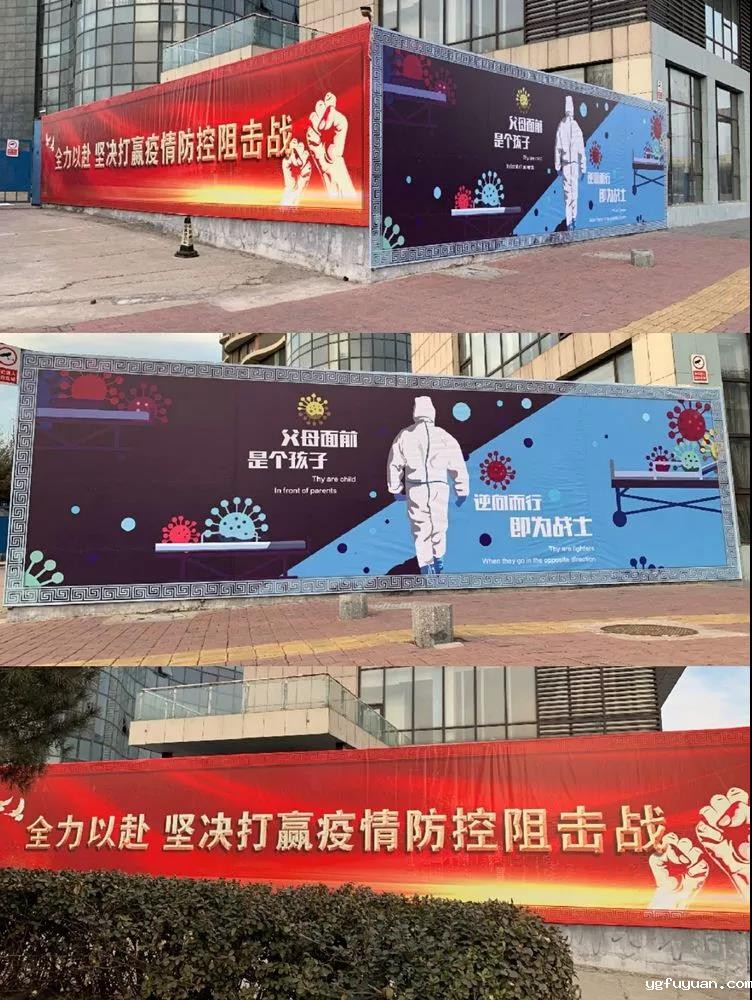 建筑围档广告直击人心:“全力以赴 坚决打赢疫情防控阻击战”,“父母面前是个孩子 逆向而行即为战士”汇聚起社会正能量,坚定了群众战胜疫情的信心和决心。