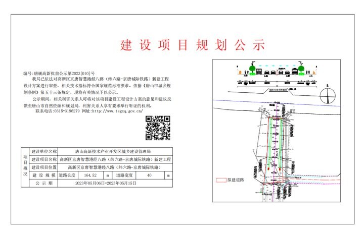 建设项目规划公示-唐规高新批前公示第2023[010]号
