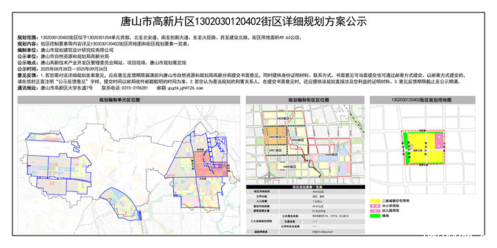 唐山市高新片区1302030120402街区详细规划方案公示的