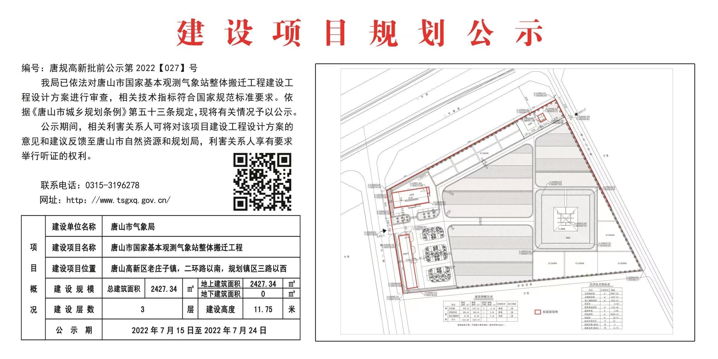 唐山市气象局 唐山市国家基本观测气象站整体搬迁工程建设项目规划公示
