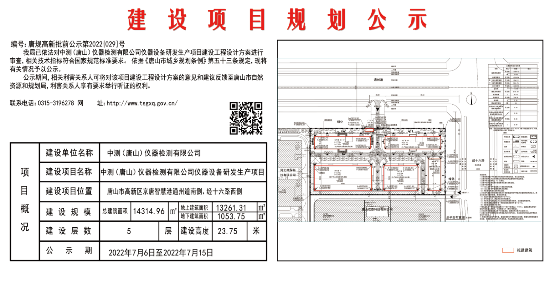 中测(唐山)仪器检测有限公司仪器设备研发生产项目建设项目规划公示