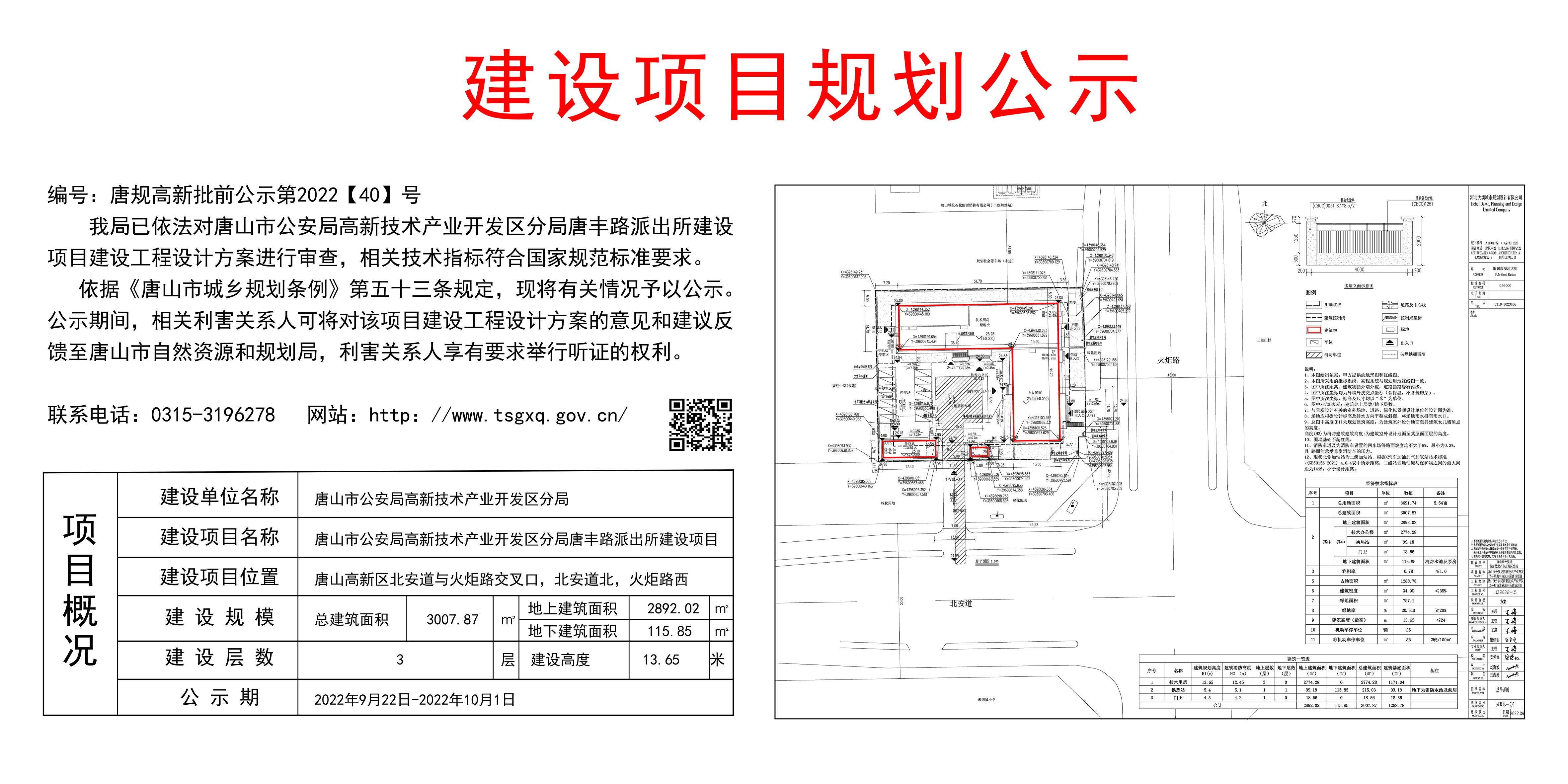 唐山市公安局高新技术产业开发区分局唐丰路派出所建设项目 唐规高新批前公示2022(040)号