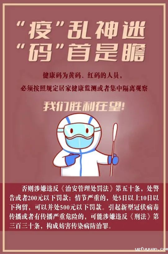 让防疫成为一种责任,让守法成为一种习惯。“疫”言既出,驷马难追;应检尽检,不漏“疫”人;“疫”乱神迷,“码”首是瞻。收藏海报,正确依法防疫。详见↓