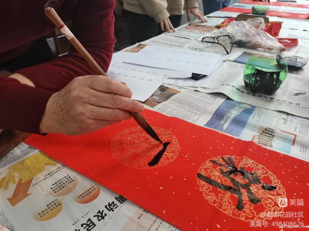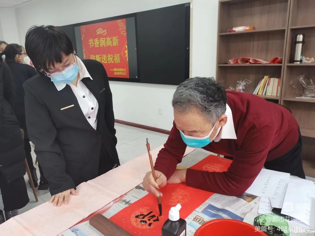 春节的脚步已经临近,在这最喜庆的节日到来之际,为给广大居民朋友们讨个辞旧迎新的好彩头,今日都市花园社区联合金色河畔社区开展的”书香润高新 迎新送祝福”活动在都市花园社区书画室如期进行,活动中居民朋友们书写春联、剪窗花、话家常,活动现场挥洒笔墨、凝神聚气、飘满墨香,浓浓的年味跃然纸上。此次活动不仅弘扬了中华民族传统文化,也增加了我们对传统节日的仪式感,增进了邻里之间的互相关爱关心也是为社区与居民搭建了良好的交流平台。