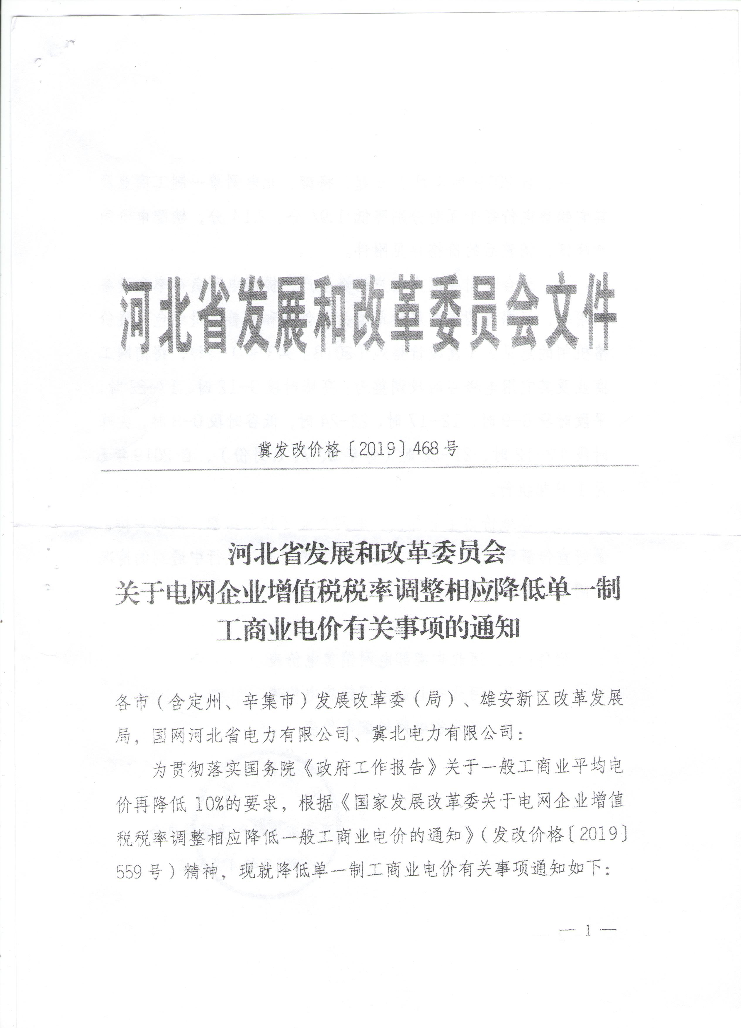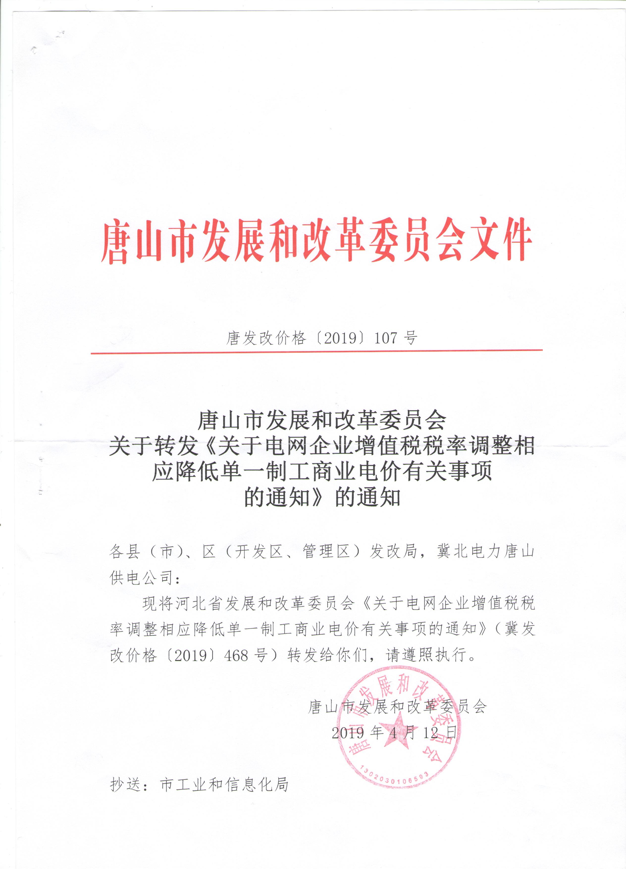 关于电网企业增值税税率调整相应降低单一制工商业电价有关事项的通知