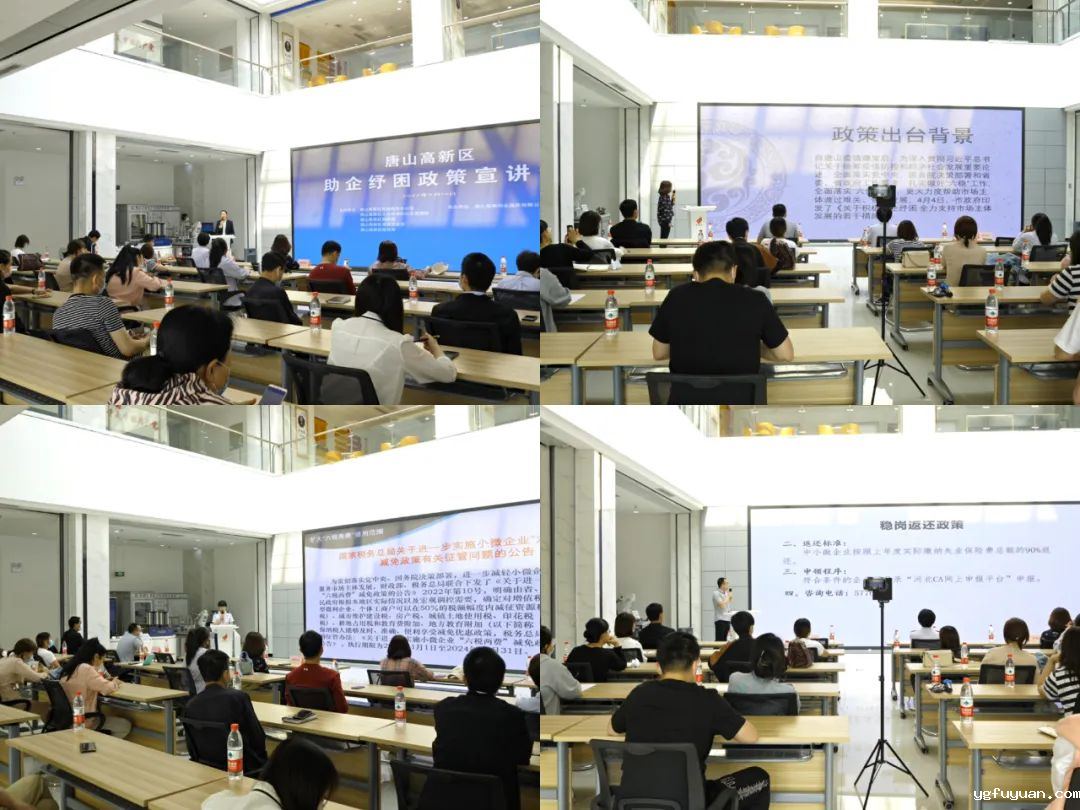 5月19日,“纾企之困 护企发展”为主题的政策宣讲会在高新区科技展示中心举行,活动由党政综合办公室、人力资源和社会保障局、财政局、发展改革局、税务局主办,唐山菜根创业服务有限公司承办。