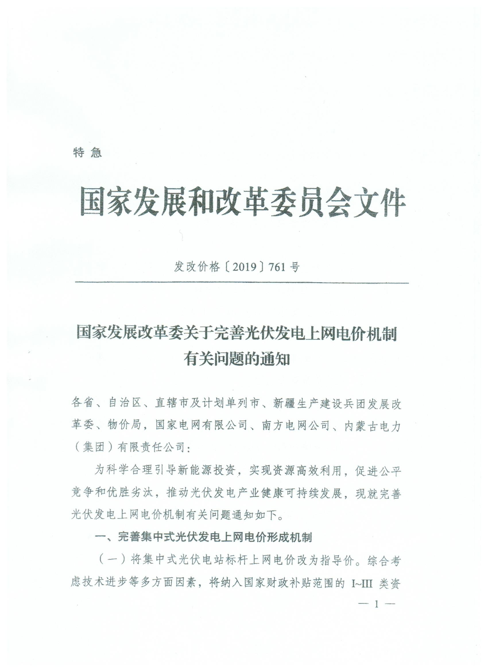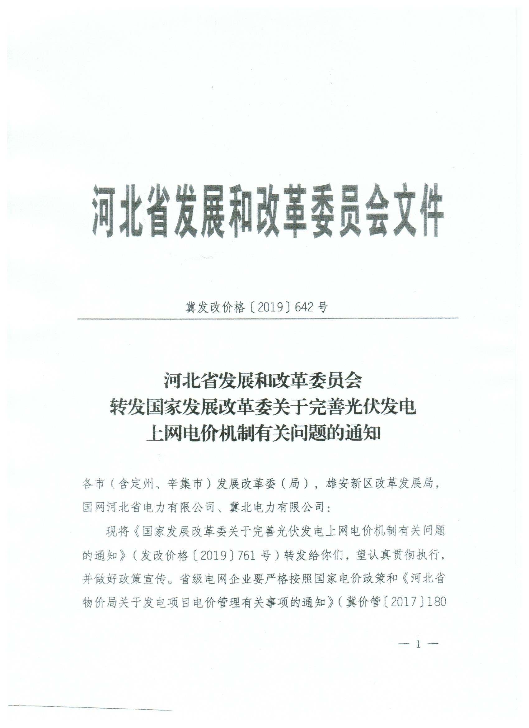 现转发《河北省发展和改革委员会转发国家发展改革委关于完善光伏发电上网机制有关问题的通知》(冀发改价格〔2019〕642号)。