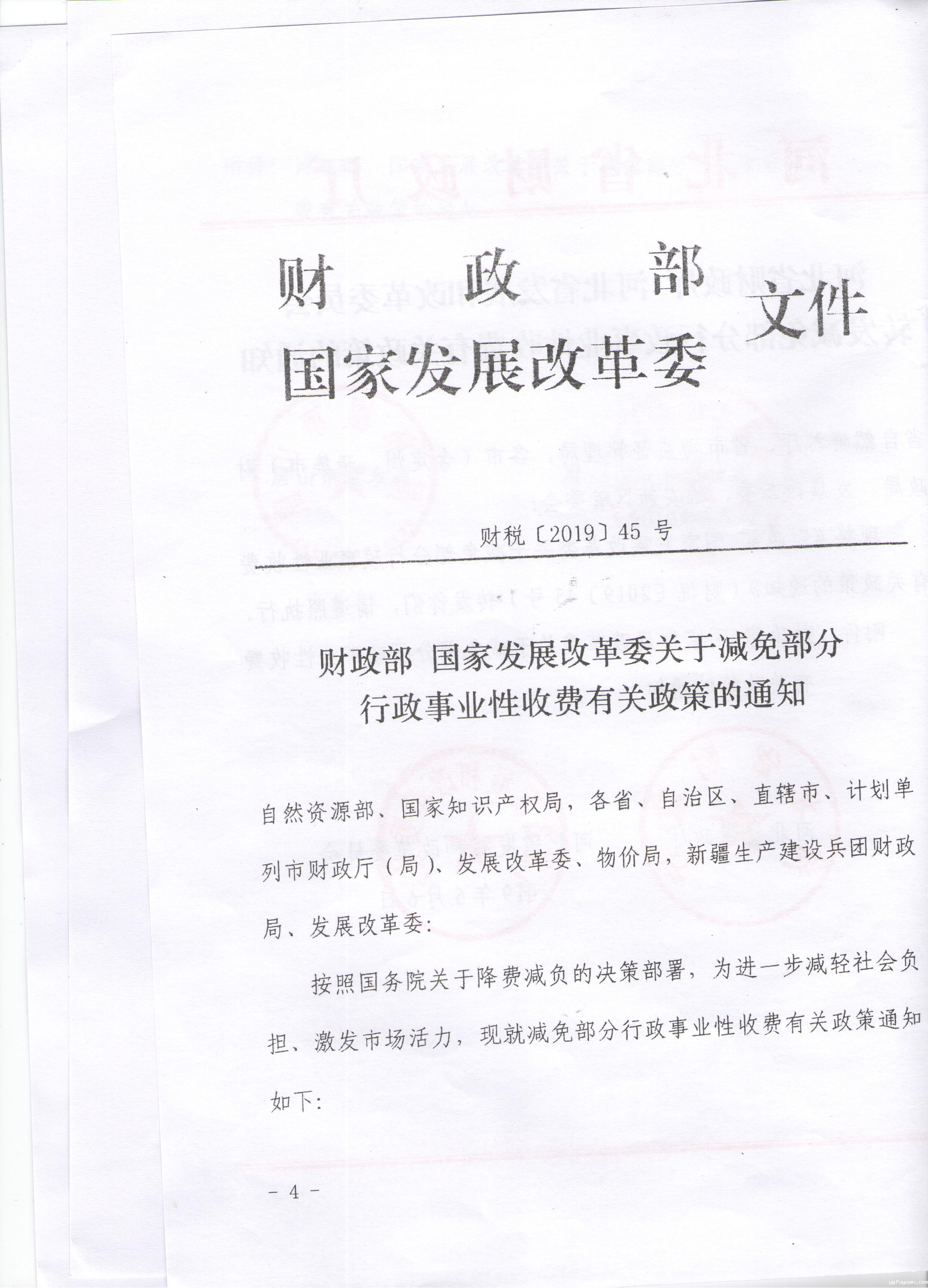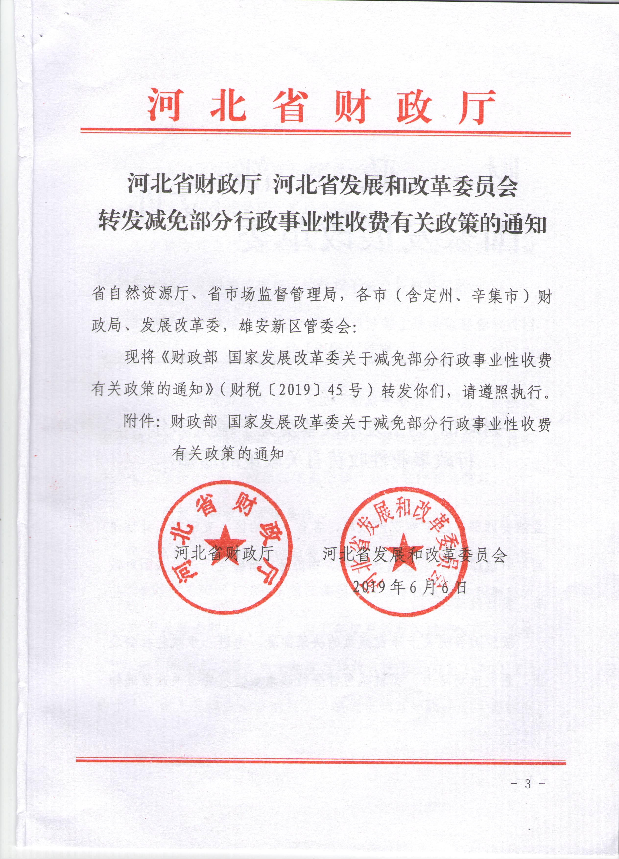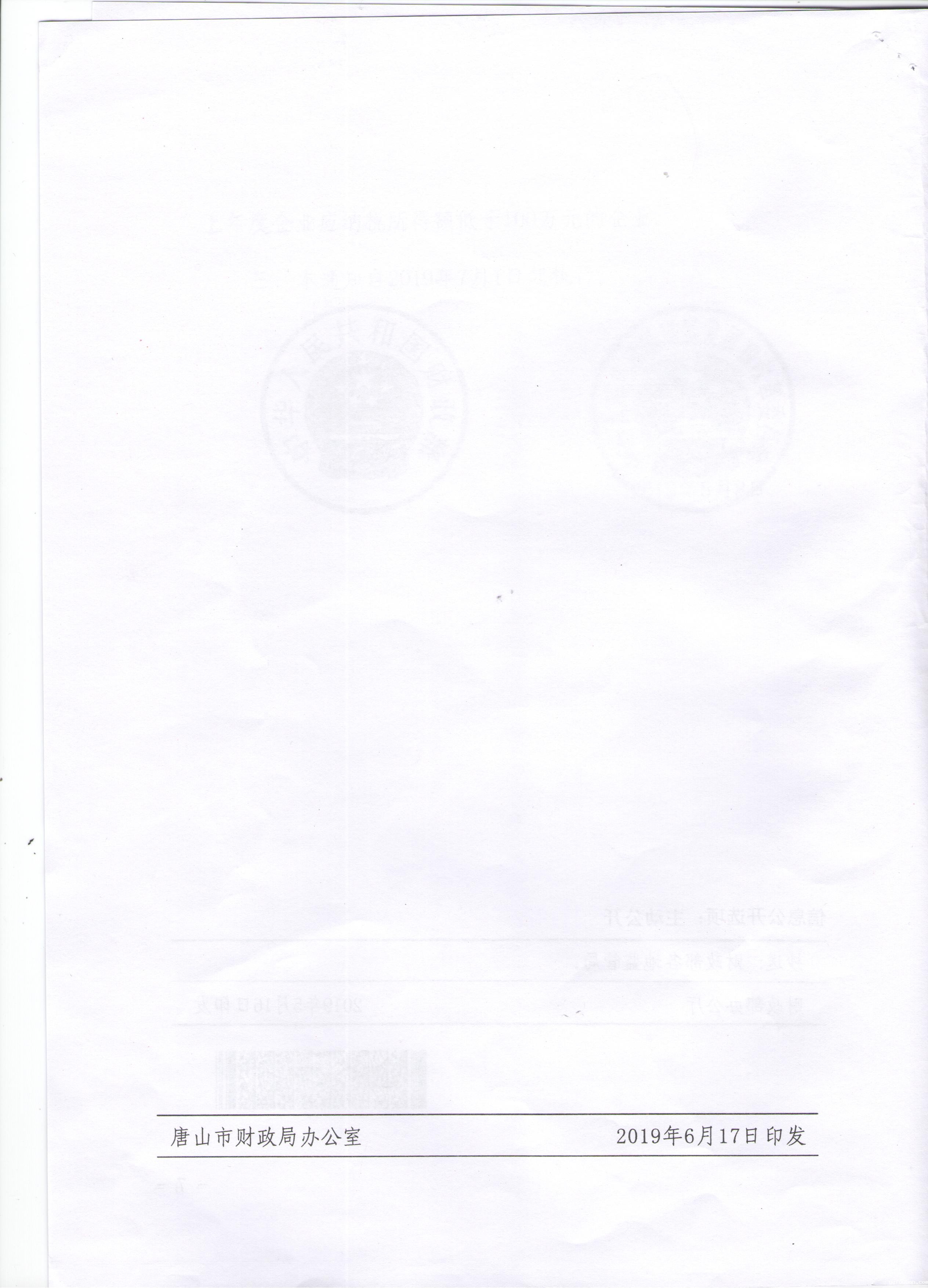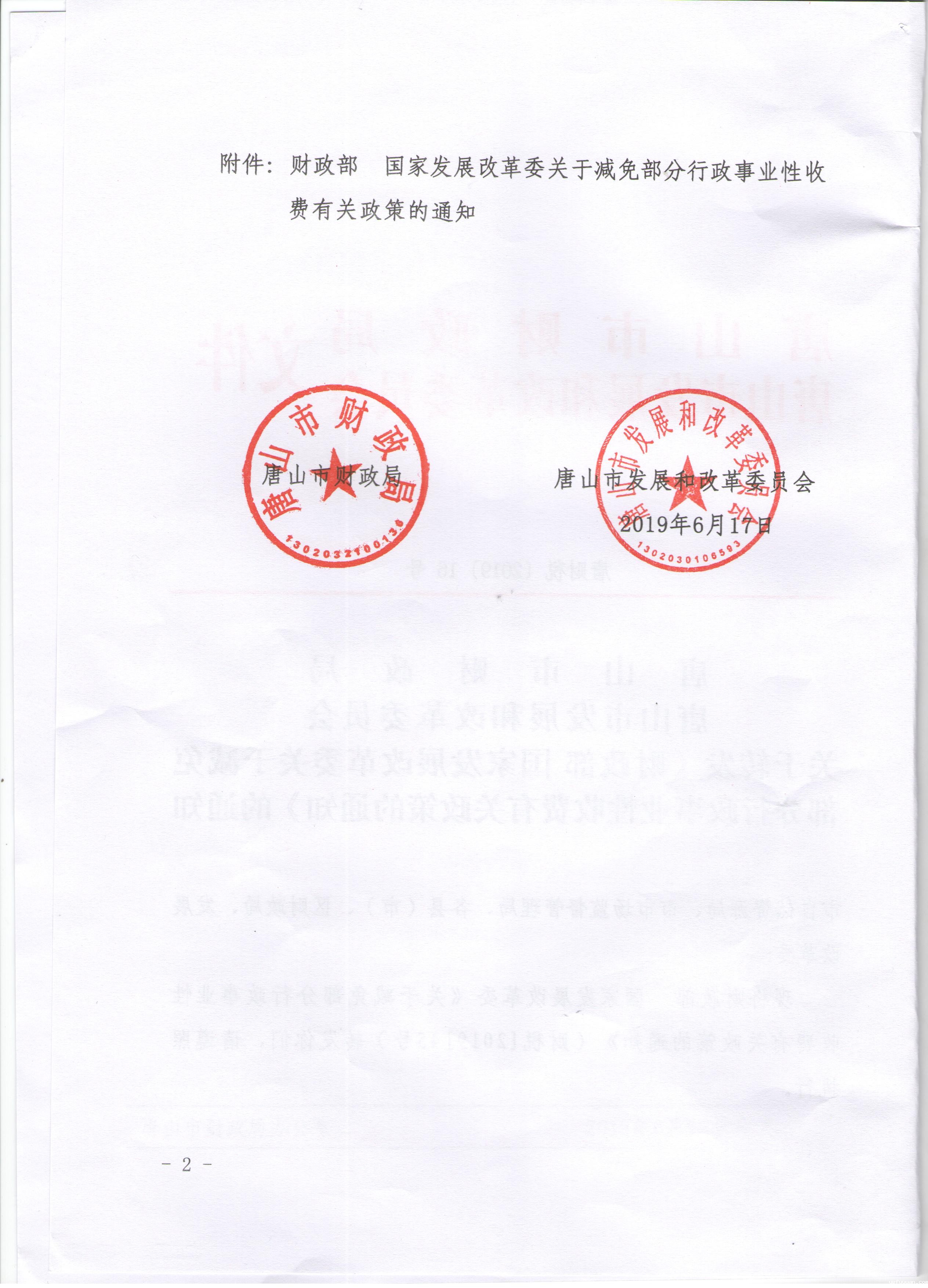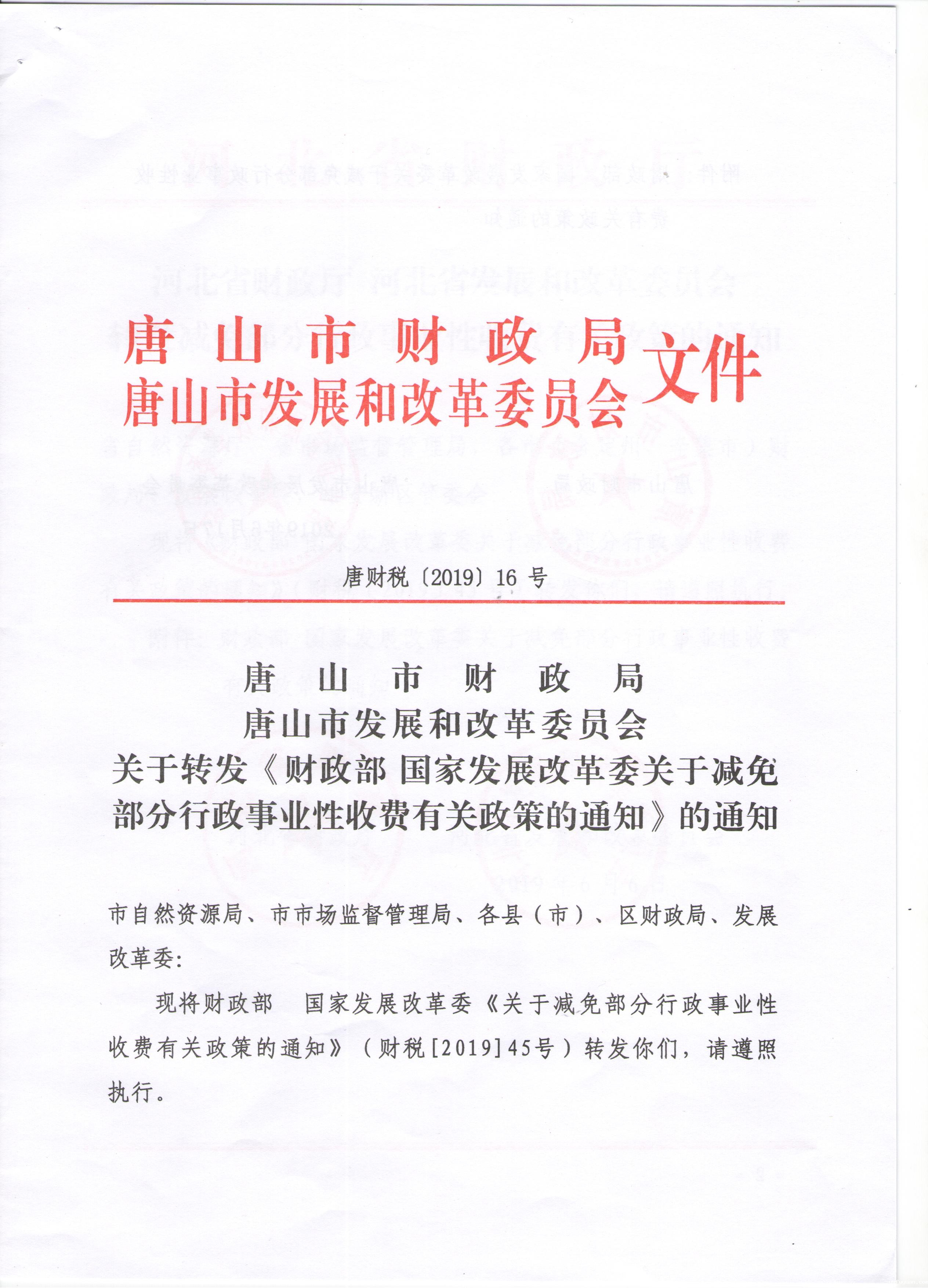 现转发唐山市财政局唐山市发改委关于转发《财政部国家发展改革委关于减免部分行政事业性收费有关政策的通知》(唐财税〔2019〕16号)。