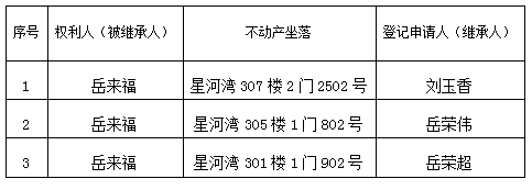 不动产继承公告(刘玉香 岳荣伟 岳荣超)